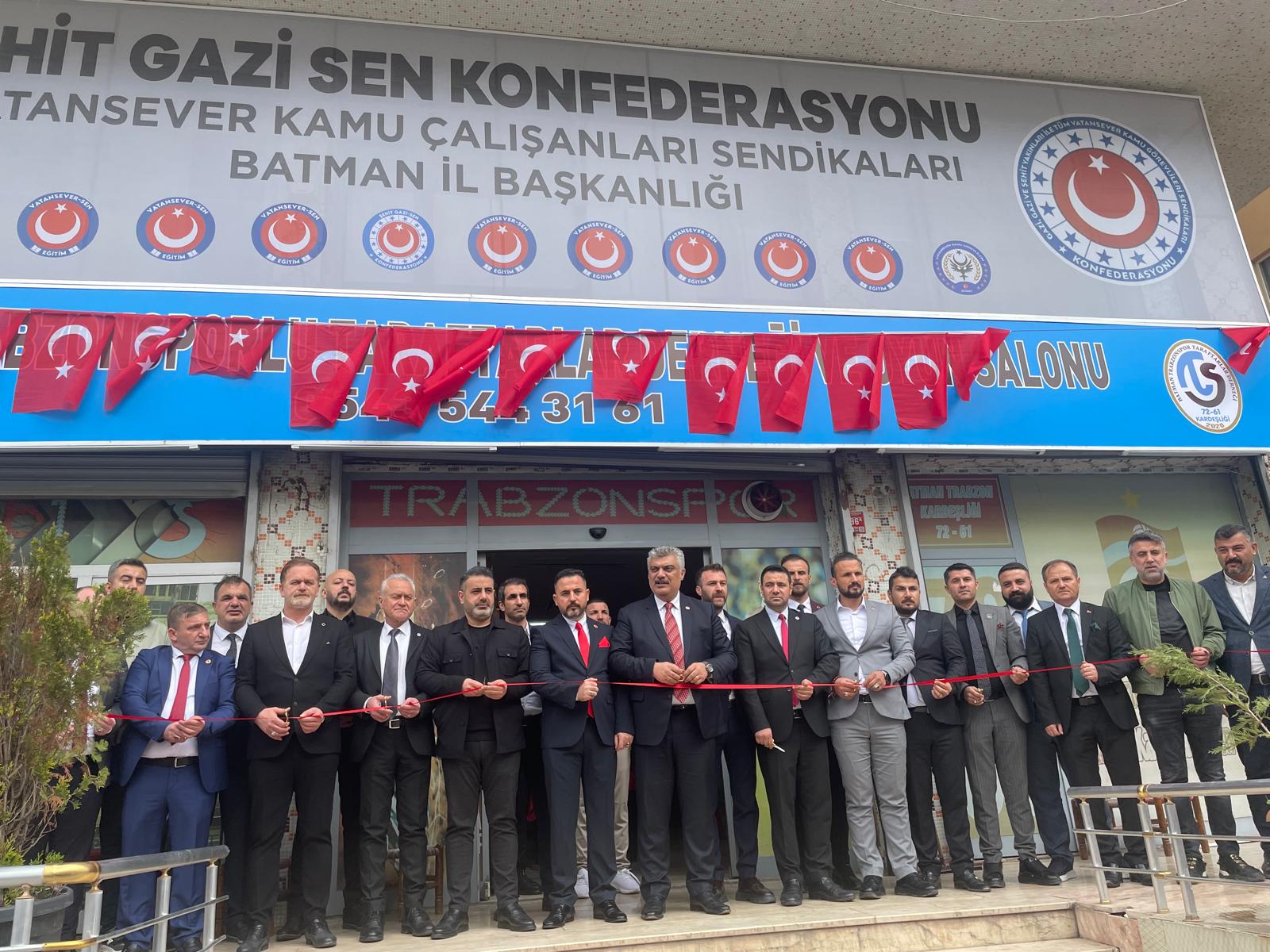 Açılış törenine; Şehit Gazi-Sen Konfederasyonu Genel Başkanı Tuna Avcı, Genel Başkan Yardımcıları Yusuf Ay ve Fikret Özmen, Vatansever Kamu Görevlileri Eğitim Sendikası Genel Başkanı Faysal Şeker ile Genel Başkan Yardımcıları Sezgin Demir, Serhat Özgedik, Kemal Doğan ve Hakkı Cilli, Siirt İl Başkanı Mehmet Şehitoğlu, Batman İl Başkanı Bayram Yargıcı, MHP Batman İl Başkanı Muhammed Arif Çetin, MHP Batman İlçe Başkanı Ramazan Toy, Batman Konfederasyon İl Başkanı Taha Etiz, Türkiye Şehit ve Gazi Aileleri Vakfı Başkanı Ferhat Tüzün, TÜGVA Bölge Koordinatörü Selman Yarbo ve TÜGVA İl Başkanı Mehmet Onutçu katılım sağladı.