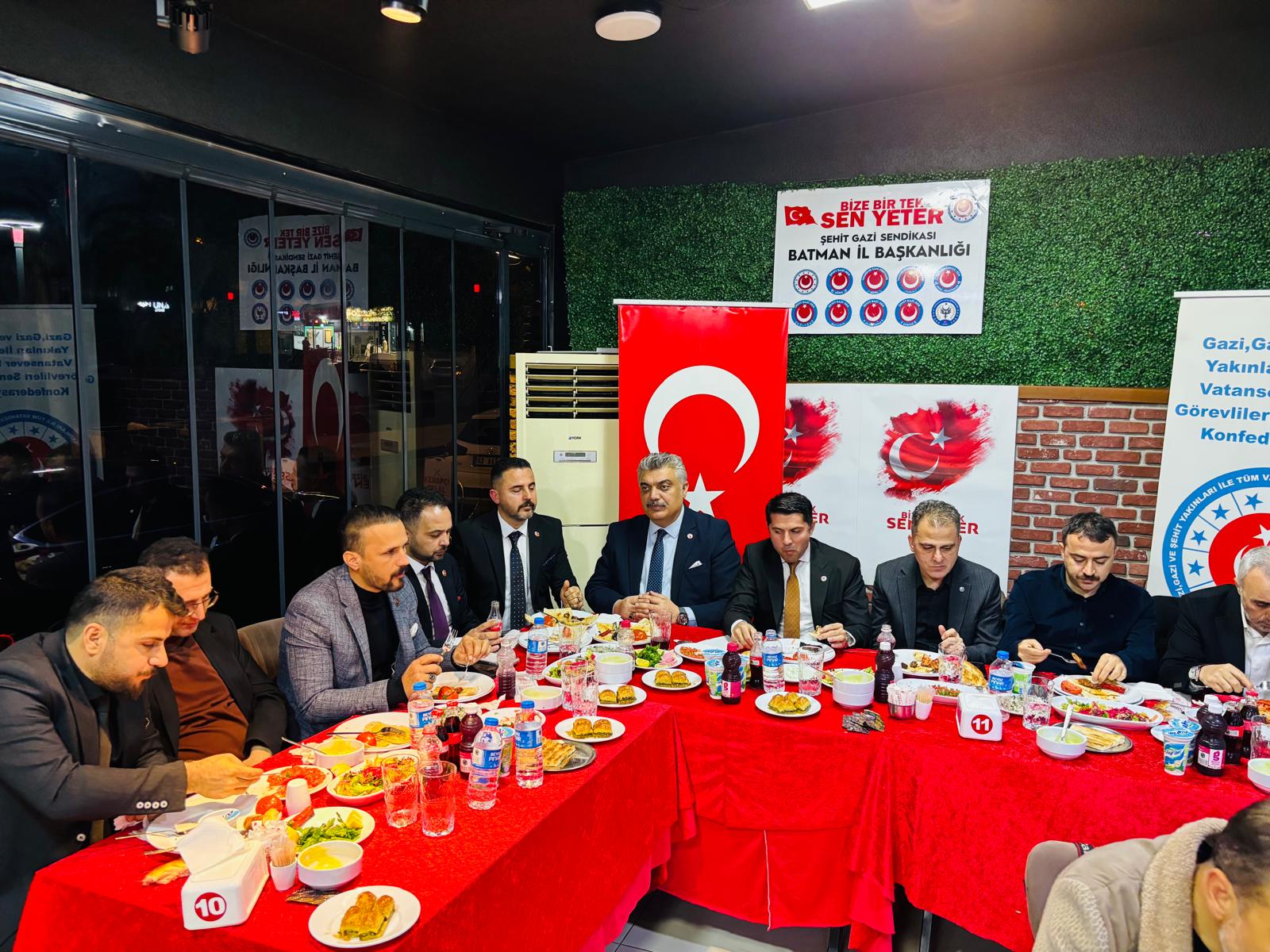 Şehit Gazi-Sen Konfederasyonu Batman İl Başkanlığımız tarafından Ramazan ayı vesilesiyle düzenlenen iftar programında, üyelerimiz, şehit ve gazi ailelerimiz ile çok sayıda davetli aynı sofrada bir araya geldi.